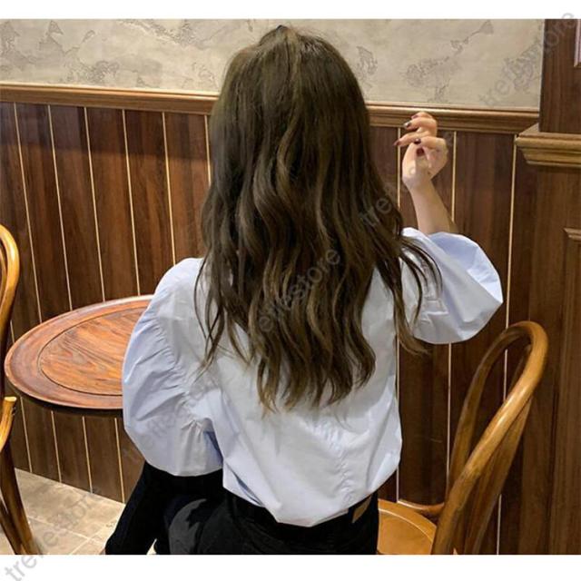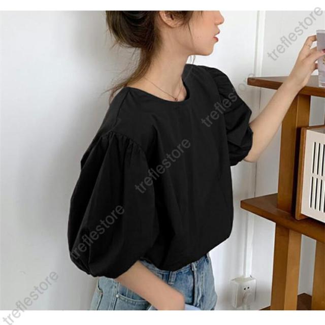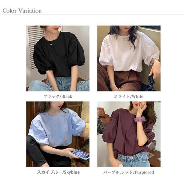 【ポイント5倍!】パフスリーブ ブラウス バルーンスリーブ 半袖 トップス レディース 五分袖 ボリューム袖 ボリュームスリーブ ぽわん ゆったり 体型カバー オフィス カジュアル