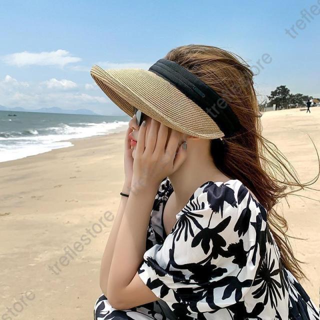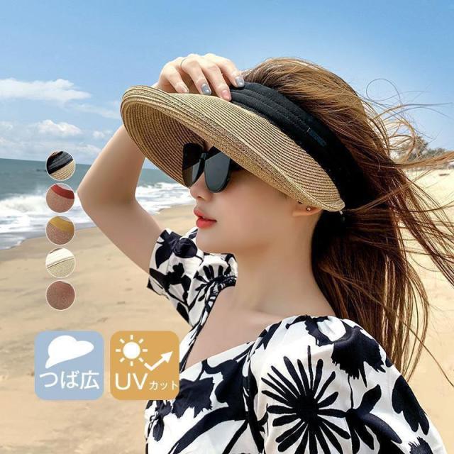 【ポイント5倍!】サンバイザー レディース 麦わら帽子 つば広 紫外線 調整可 UVカット帽子 ハット 母の日 日よけ 女優帽 春夏 旅行 キャップ 自転車 日焼け軽減