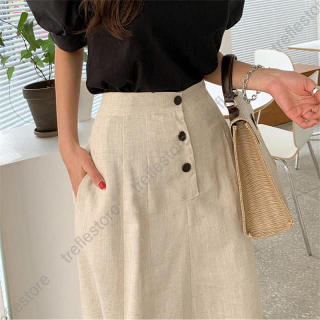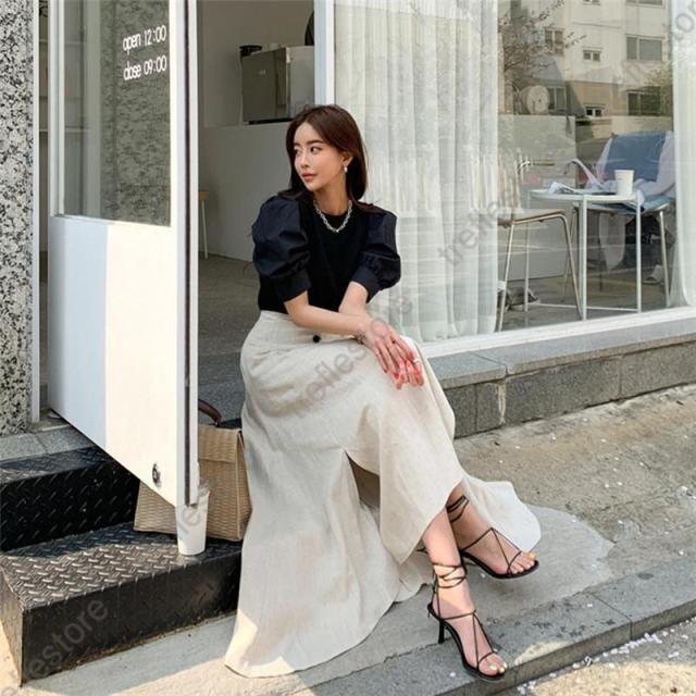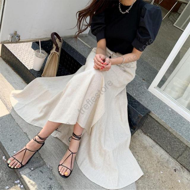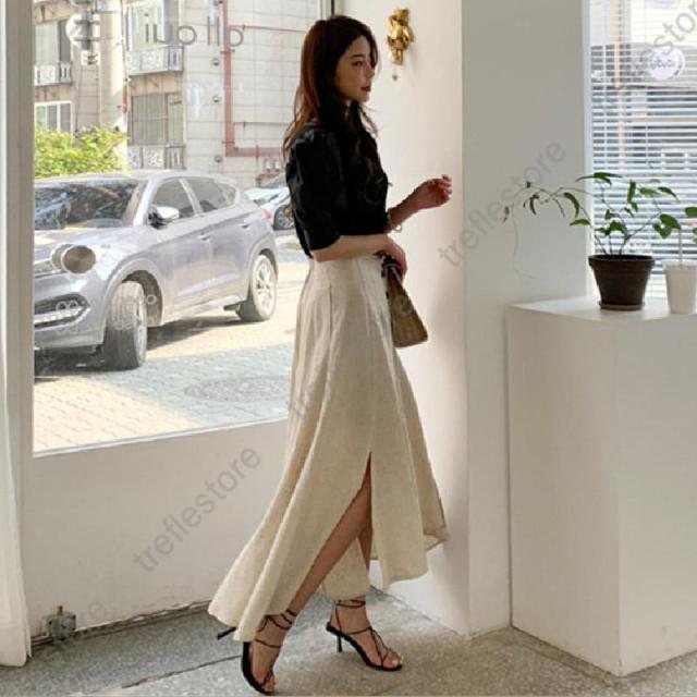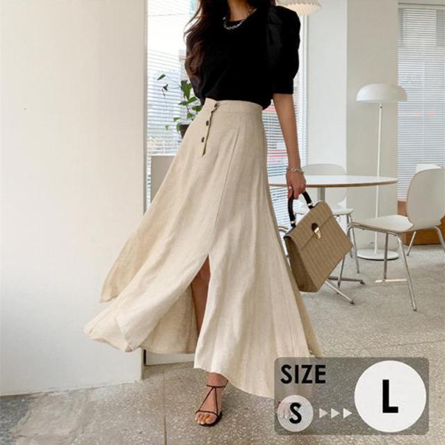【ポイント5倍!】ロングスカート リネン スカート フィッシュテール 綿麻 サイドスリット レディース 大きいサイズ 無地 aライン 膝下 春 夏 秋