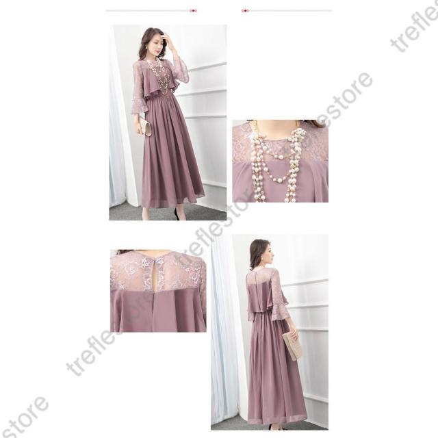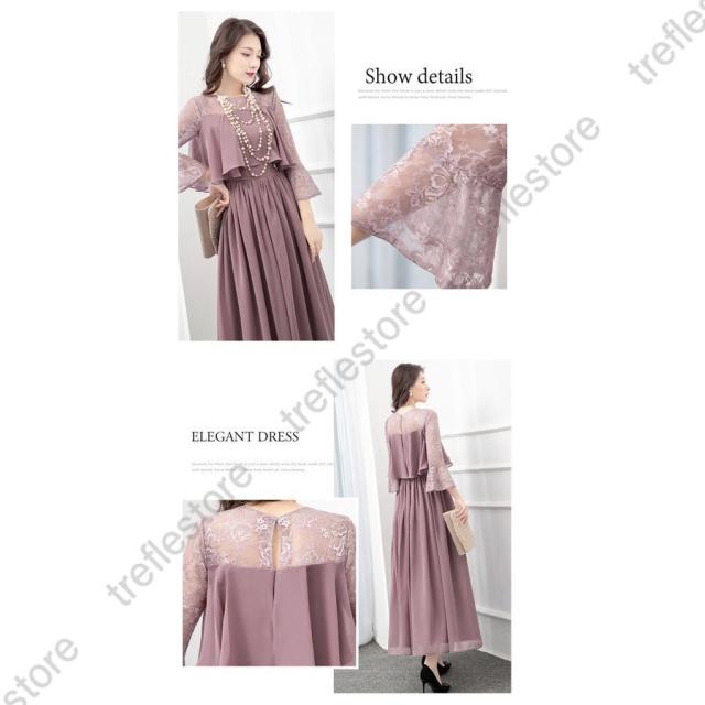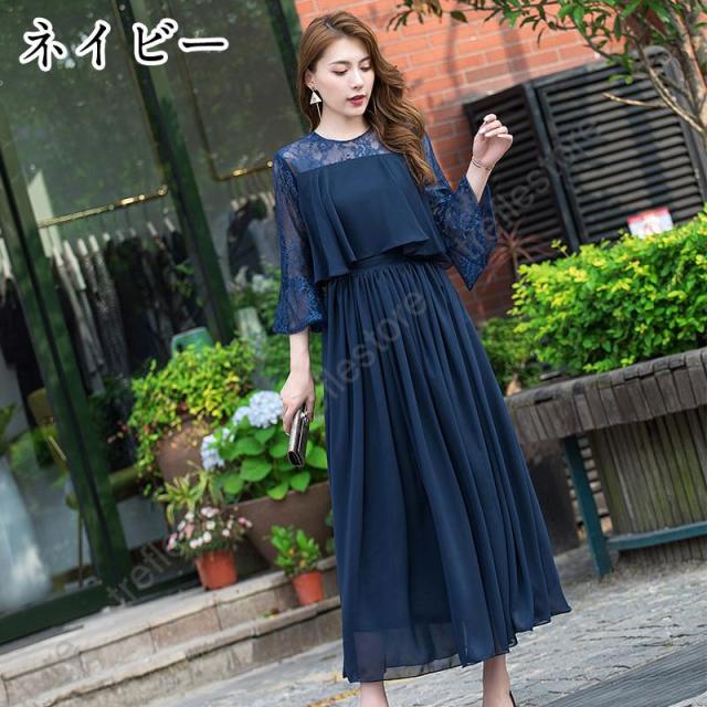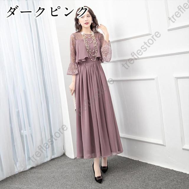 【ポイント5倍!】ワンピース 結婚式 パーティードレス ドレス レディース フォーマル 大きいサイズ お呼ばれ ミセス 服装 女性 袖あり 披露宴 二次会 成人式 30代 40代 50代