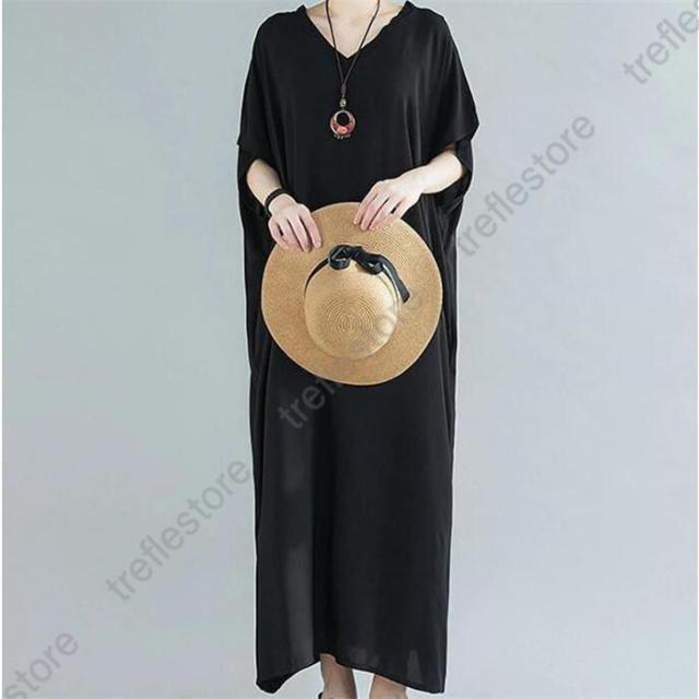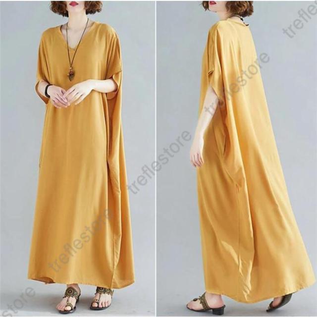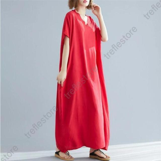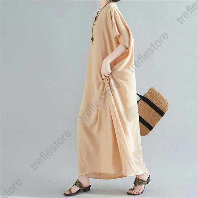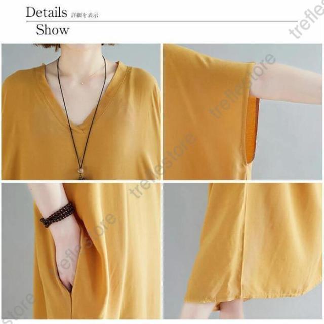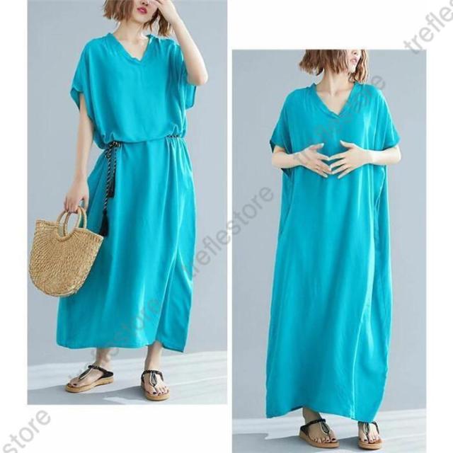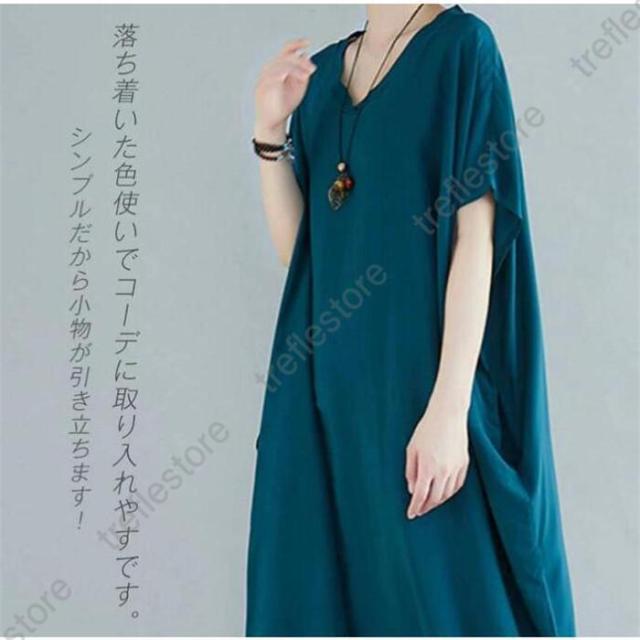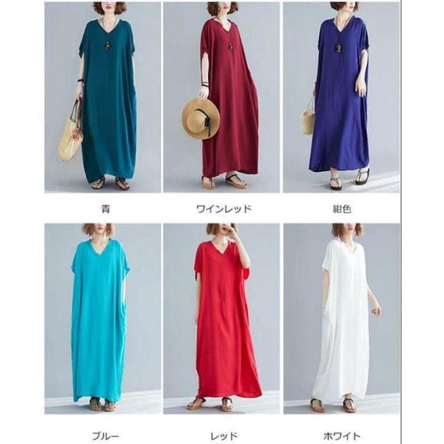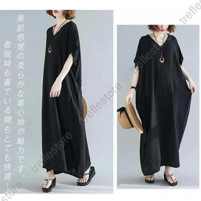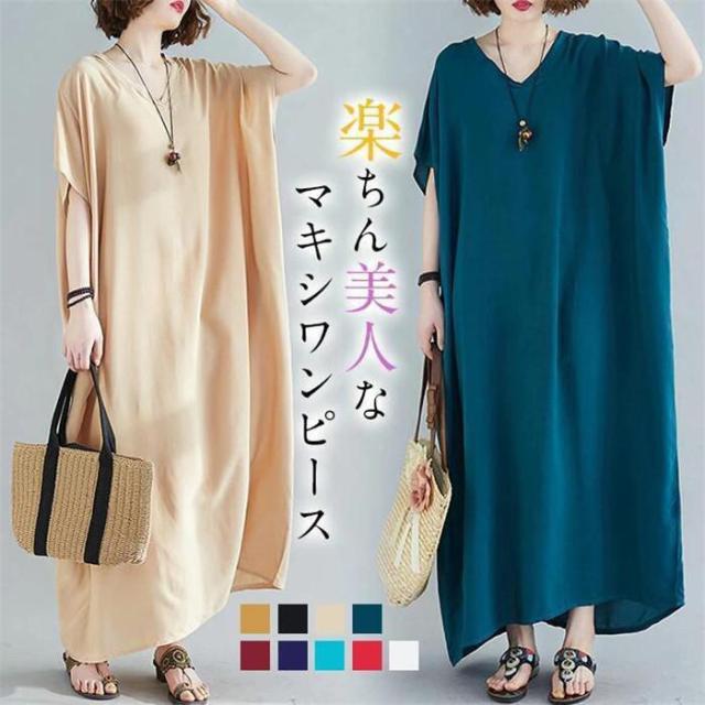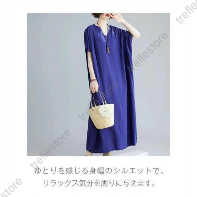 【ポイント5倍!】ワンピース レディース 夏 半袖 マキシ丈ワンピース ロングワンピース 体型カバー ゆったり ロング丈 きれいめ Vネック 大きいサイズ 春 夏