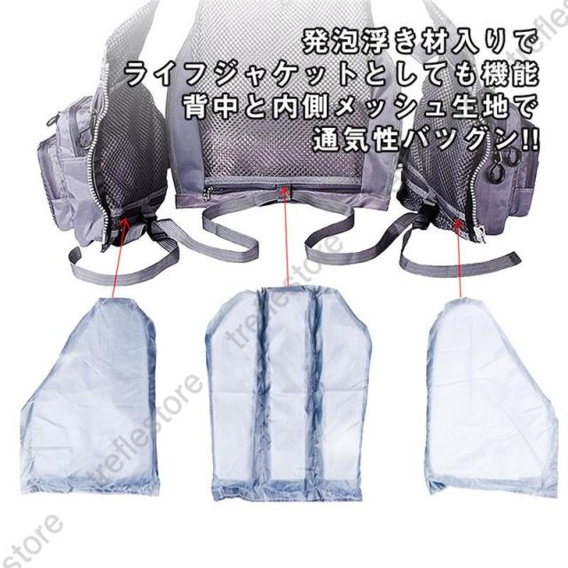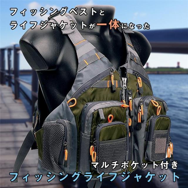 【ポイント5倍!】ライフジャケット 2way フィッシングベスト フローティングベスト マルチポケット 大人用 フリーサイズ アウトドア レジャー 全7色
