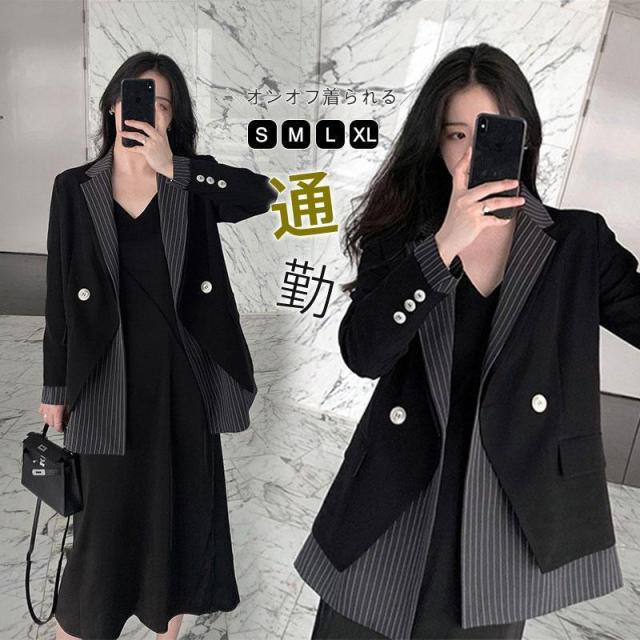 【ポイント5倍!】テーラード レディース スーツジャケット ママスーツ ママジャケット ストライプ 通勤 ビジネス お呼ばれ OL 着痩せ おしゃれ