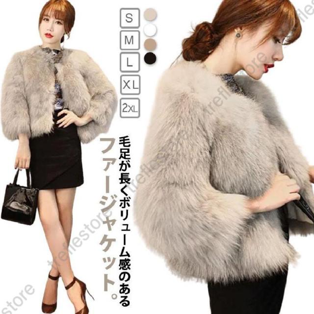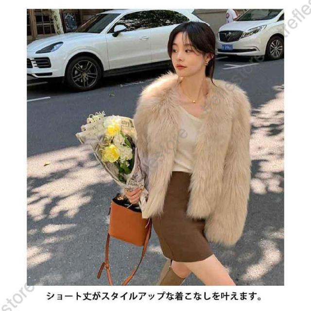 【ポイント5倍!】ジャケット レディース ファージャケット 毛皮コート 40代 ファーコート フェイクファー 防寒 ボリューム ノーカラー 大人可愛い ボリューム 秋