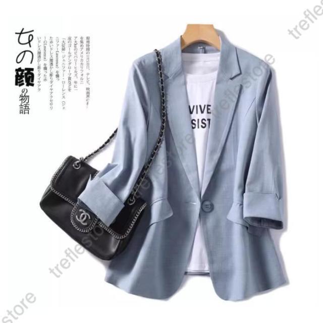 スーツ 七分袖 薄手 着痩せ カジュアル 上着 アウター 通勤 オフィス OL ママ 夏 無地 洗える 開襟シャツ コート ジャケット スーツ テーラードジャケット カーディガン 日焼け止め 紫外線対策 シフォン リネン ビジネス 着痩せ 綿麻 面接 冷房対策対策