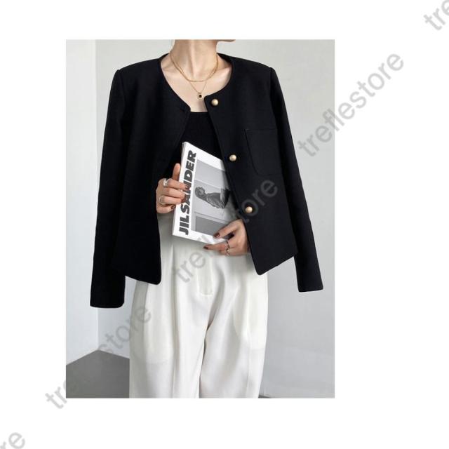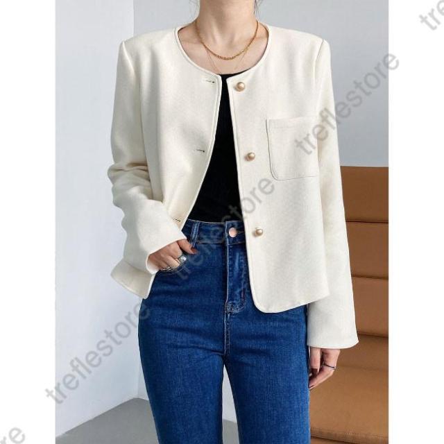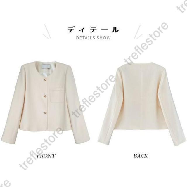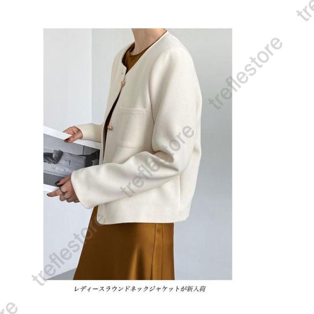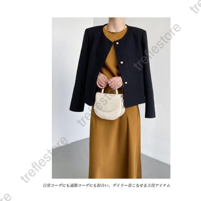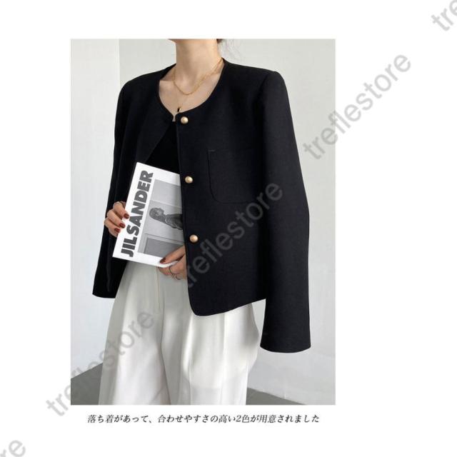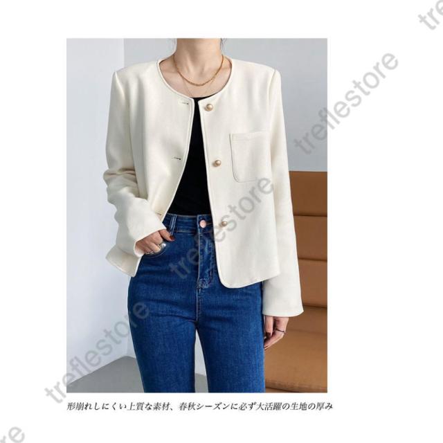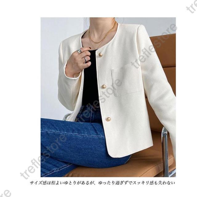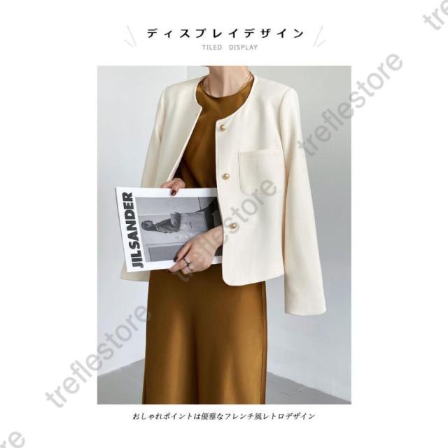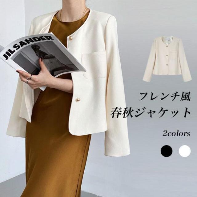【ポイント5倍!】ノーカラー ジャケット レディース フレンチ風 アウター キレイめ ショート 春秋 長袖 ノーカラージャケット 通勤 春ジャケット 秋ジャケット