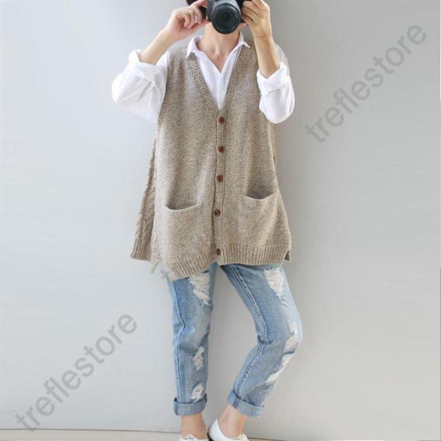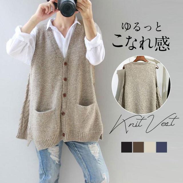 【ポイント5倍!】ベスト レディース ニットベスト 50代 30代 ボタン 重ね着 ジレ チョッキ 秋コーデ カジュアル ノースリーブ ロング丈 vネック 体型カバー セーター