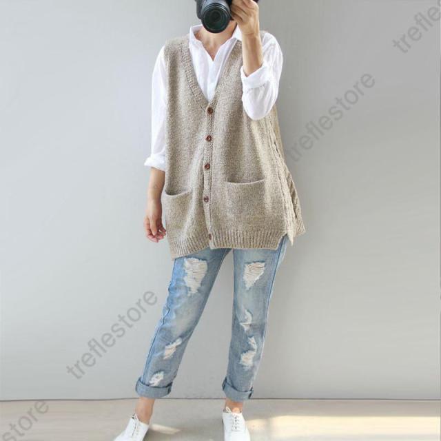 【ポイント5倍!】ベスト レディース ニットベスト 50代 30代 ボタン 重ね着 ジレ チョッキ 秋コーデ カジュアル ノースリーブ ロング丈 vネック 体型カバー セーター