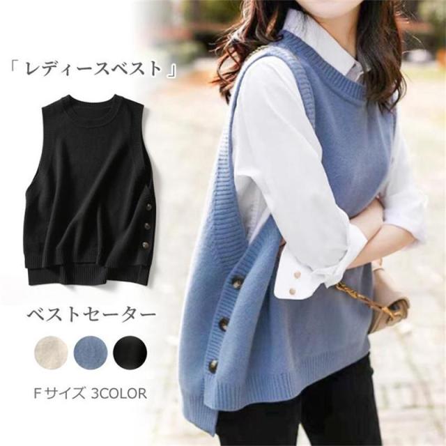 ニットベスト レディース トップス 女性 ノースリーブ セーター uネック コーデ カジュアル 女性 おしゃれ ファッション 秋冬新作