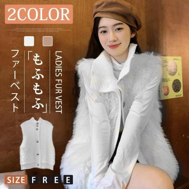 【ポイント5倍!】ファーベスト レディース ニットベスト もふもふ フェイクファー ニット ベスト 立ち襟 ノースリーブ アウター 羽織り トップス 無地