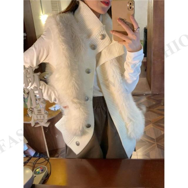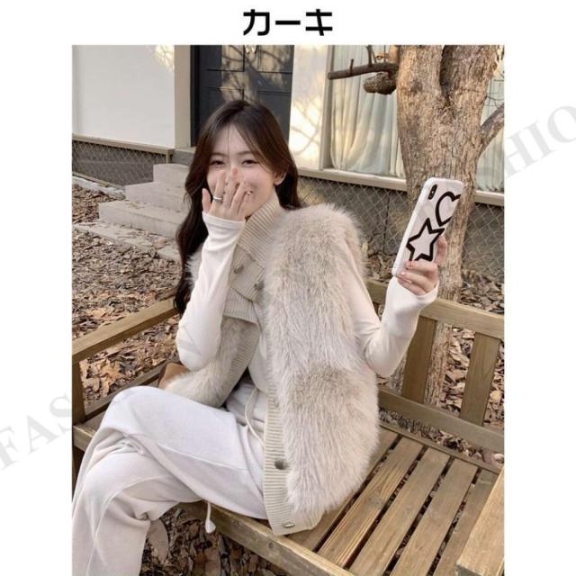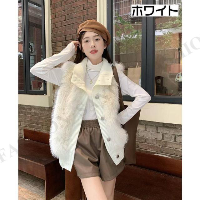 ファーベスト レディース ニットベスト もふもふ フェイクファー ニット ベスト 立ち襟 ノースリーブ アウター 羽織り トップス 無地 おしゃれ カジュアル 可愛い 通勤 通学 ファッション 秋 冬