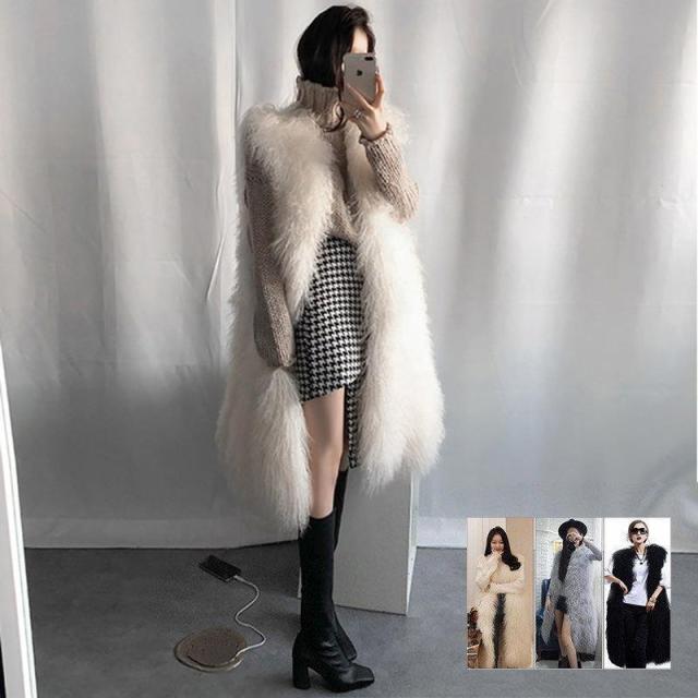 【ポイント5倍!】ファーベスト ロング丈 毛皮ベスト レディース 無地 もこもこ ふわふわ ボアベスト 防寒 厚手 保温 暖かい 秋冬 アウター トップス きれいめ おしゃれ