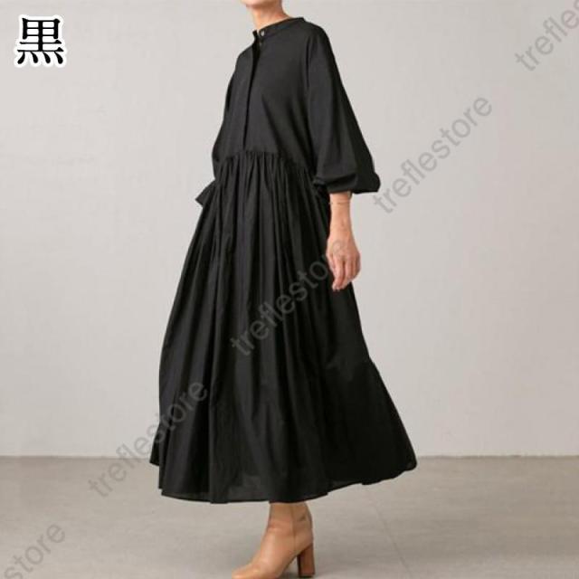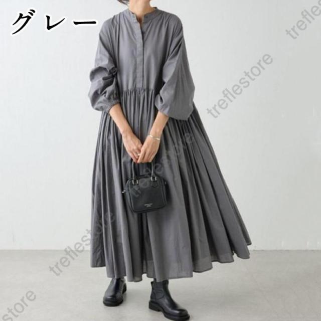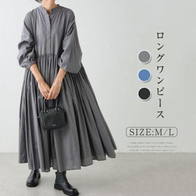 【ポイント5倍!】ワンピース シャツワンピース 長袖 レディース ロングワンピース マキシワンピース ギャザー マキシ丈 大人可愛い 大きいサイズ きれいめ 春 夏