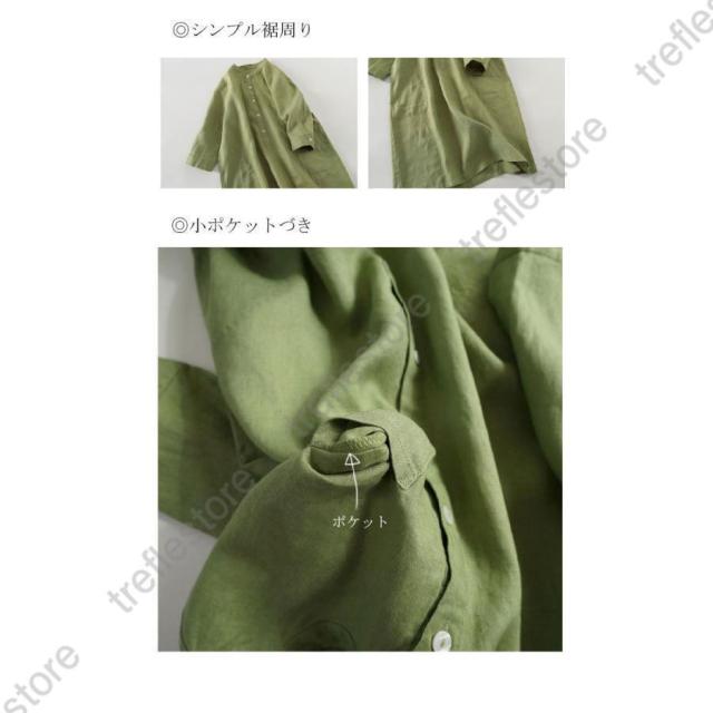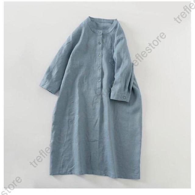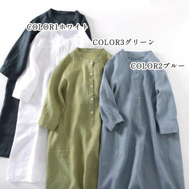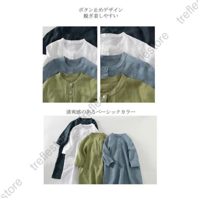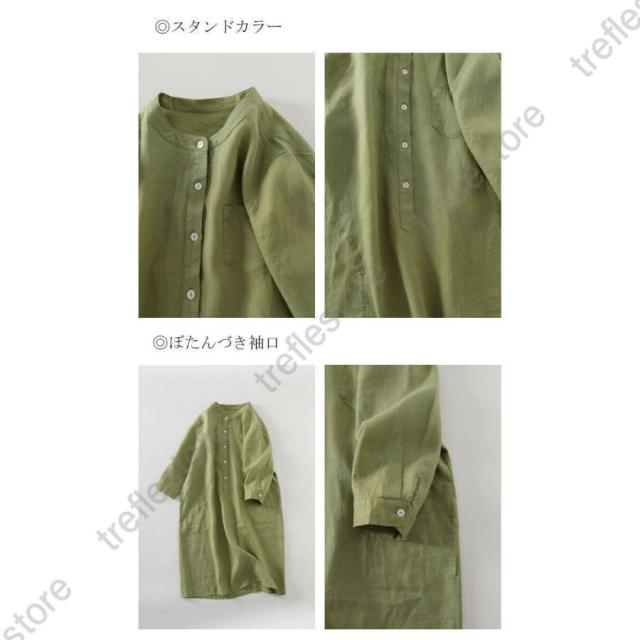 【ポイント5倍!】シャツワンピース レディース ロングワンピース リネン風ワンピース ロングシャツ ゆったり ボタン留め スタンドカラー 長袖