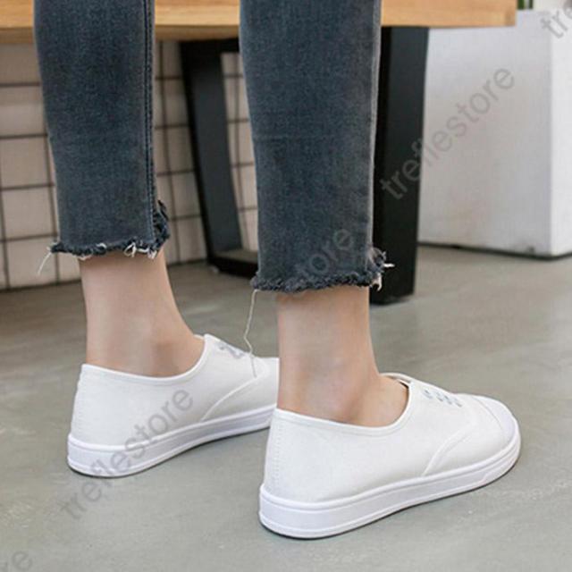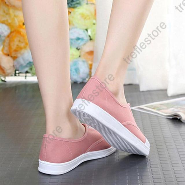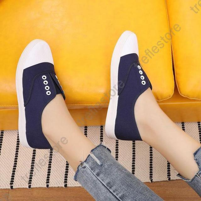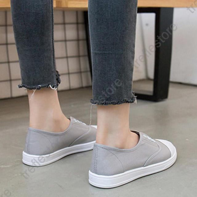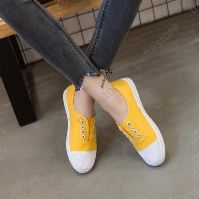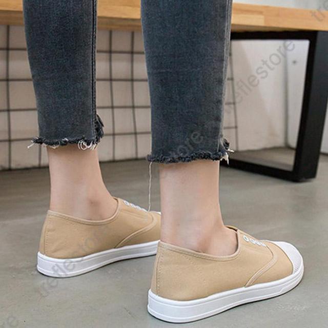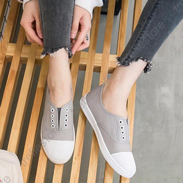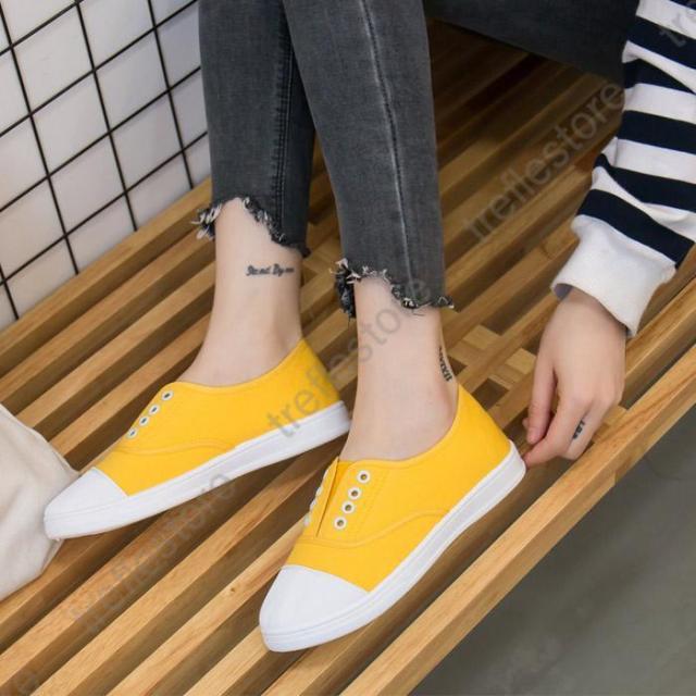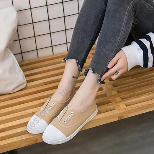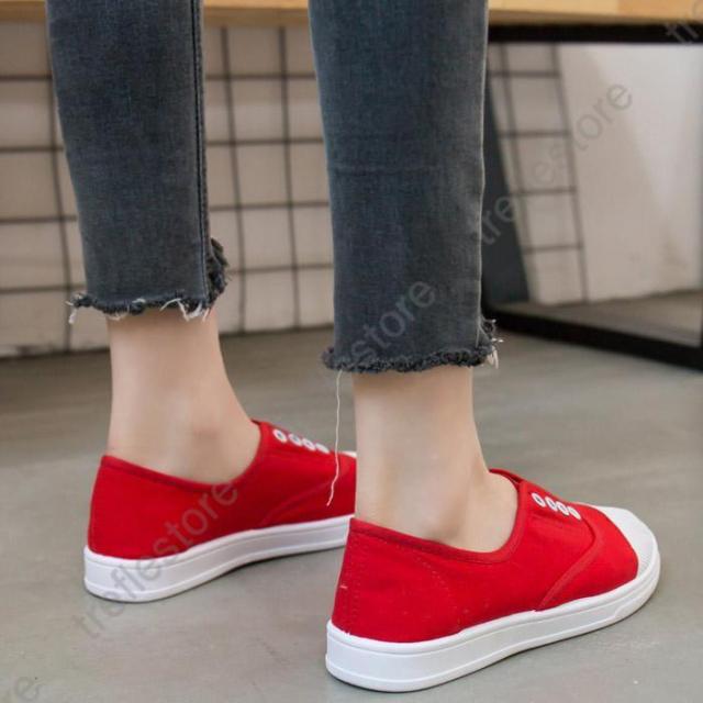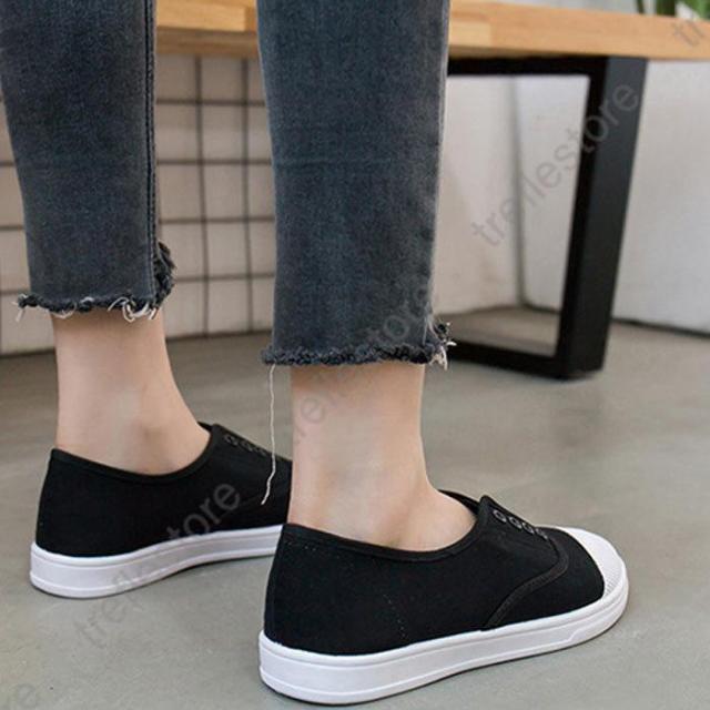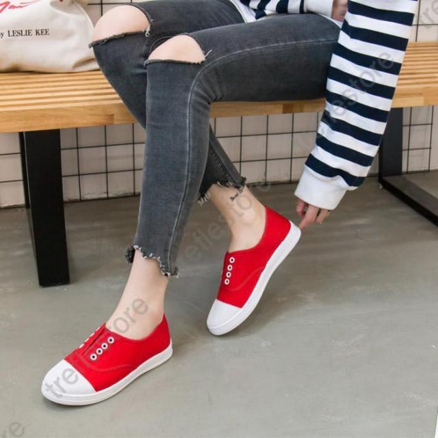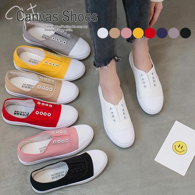 【ポイント5倍!】紐なし スリッポン フラット ぺたんこ キャンバス ローカット シューズ スニーカー レディース
