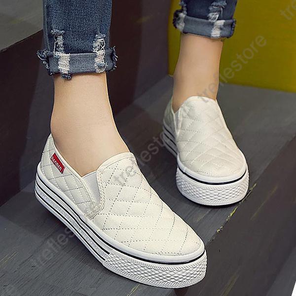 【ポイント5倍!】スリッポン レディース スニーカー 靴 歩きやすい 厚底 キルティング フラットシューズ
