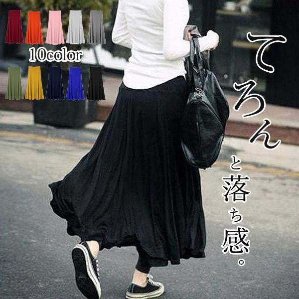 スカート マキシスカート とろみスカート ウエストゴム レディース 体型カバー 大きいサイズ フレアスカート Aライン カラバリ豊富 ロング丈 ミモレ丈 選べる丈 ボトムス