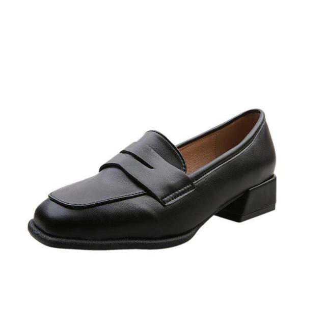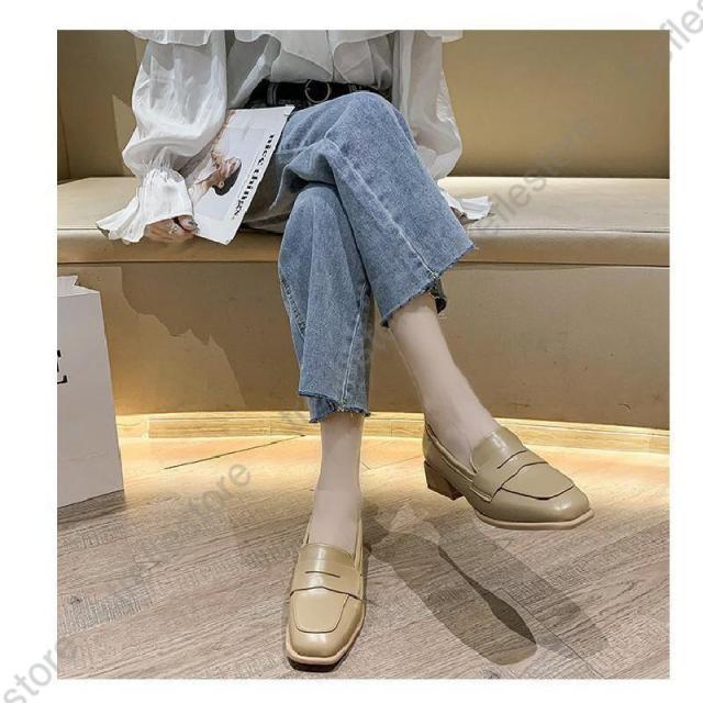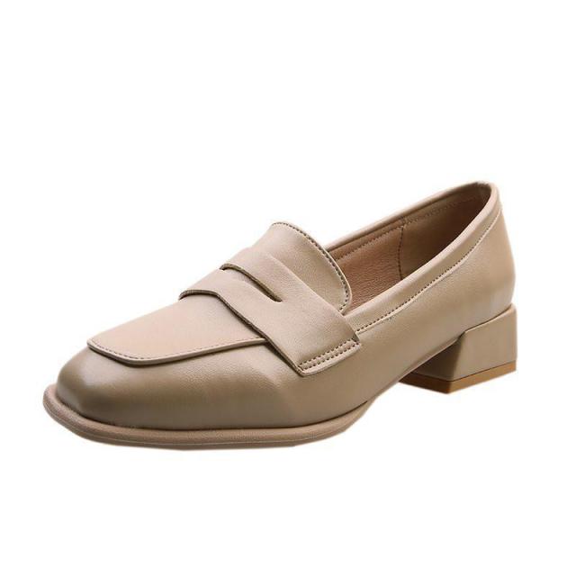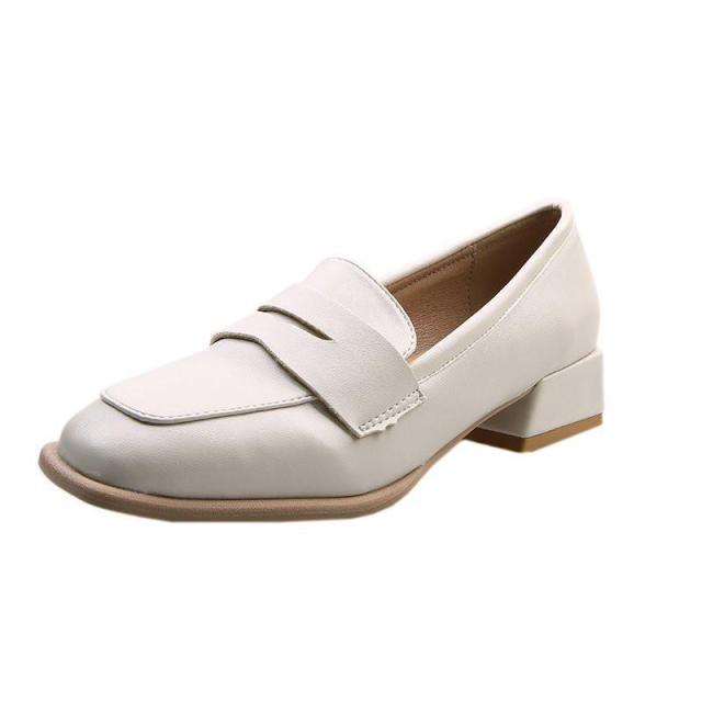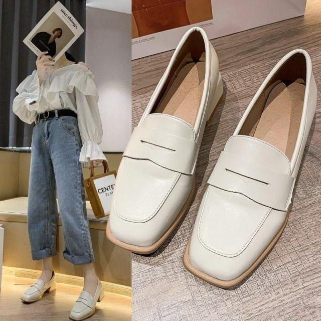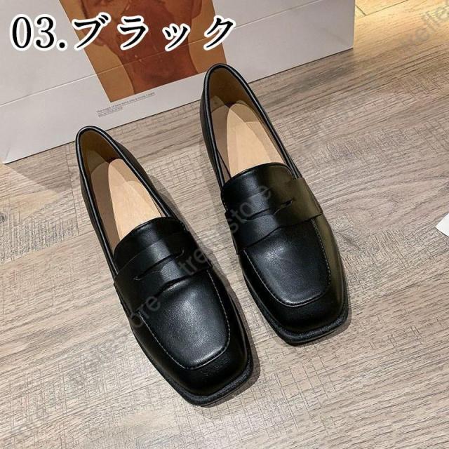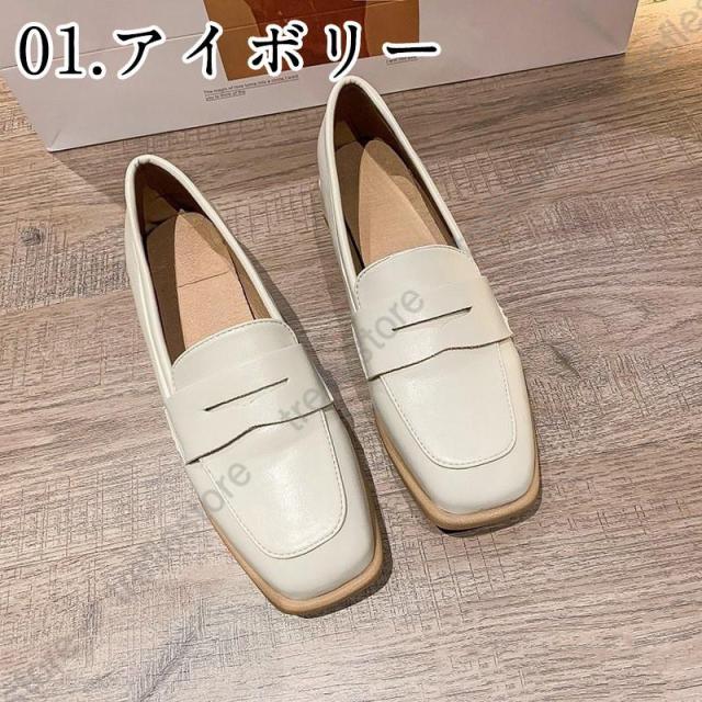 【ポイント5倍!】ローファー レディース ヒール 軽い スクエアトゥ 秋 痛くない コインローファー アイボリー キャメル ブラック