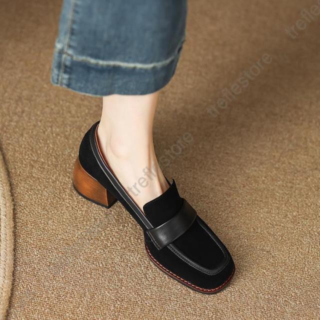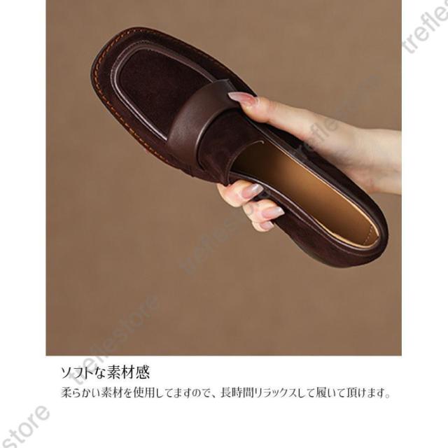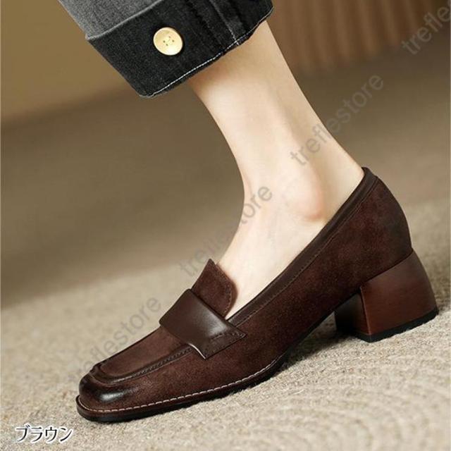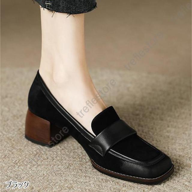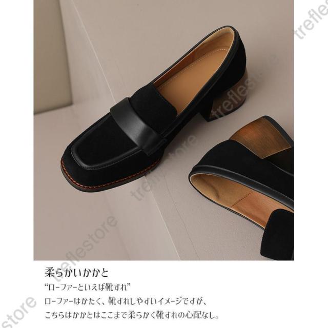 【ポイント5倍!】ローファー 靴 レディース スクエアトゥ 4.5センチヒール 太ヒール 厚底 消臭 シンプル 滑り止め 柔らかい 痛くない 疲れない 歩きやすい 大人 コーデ 春 夏 秋
