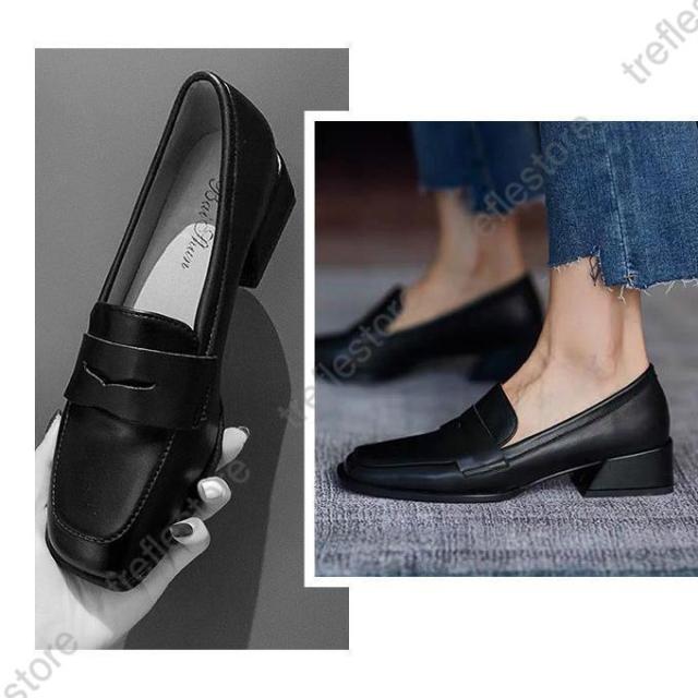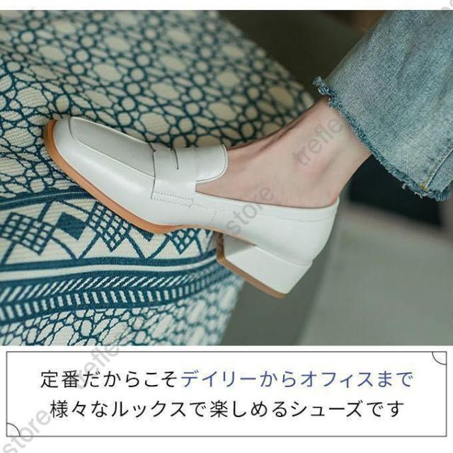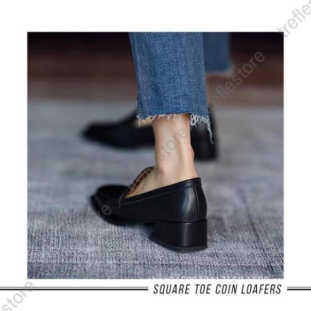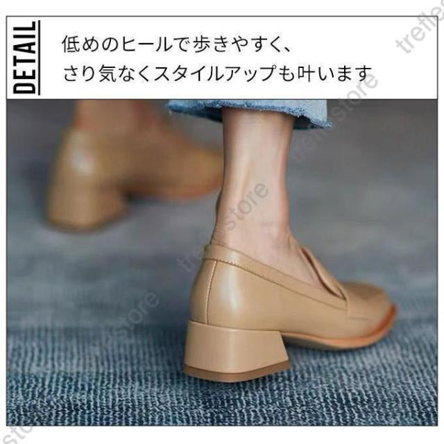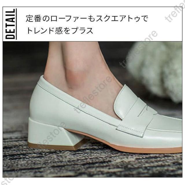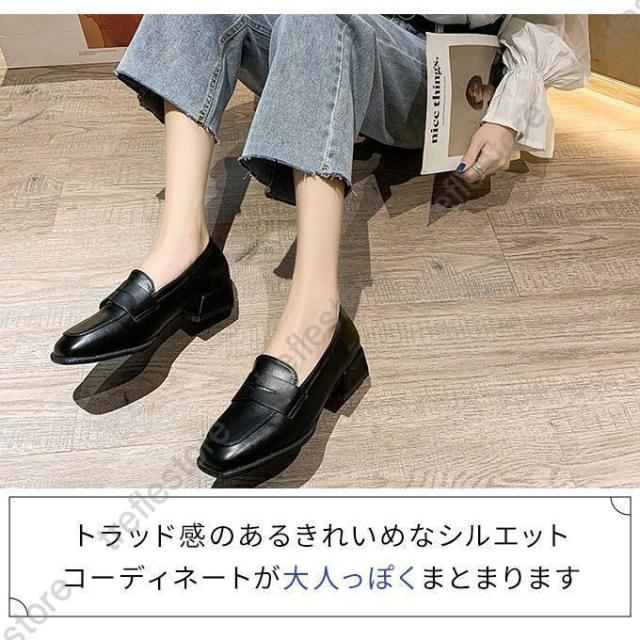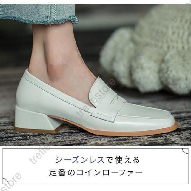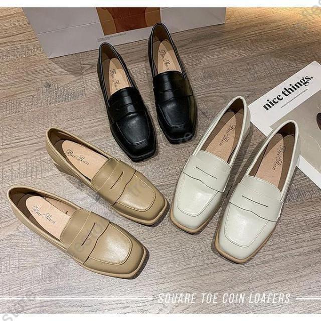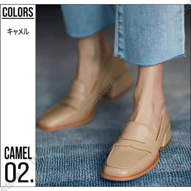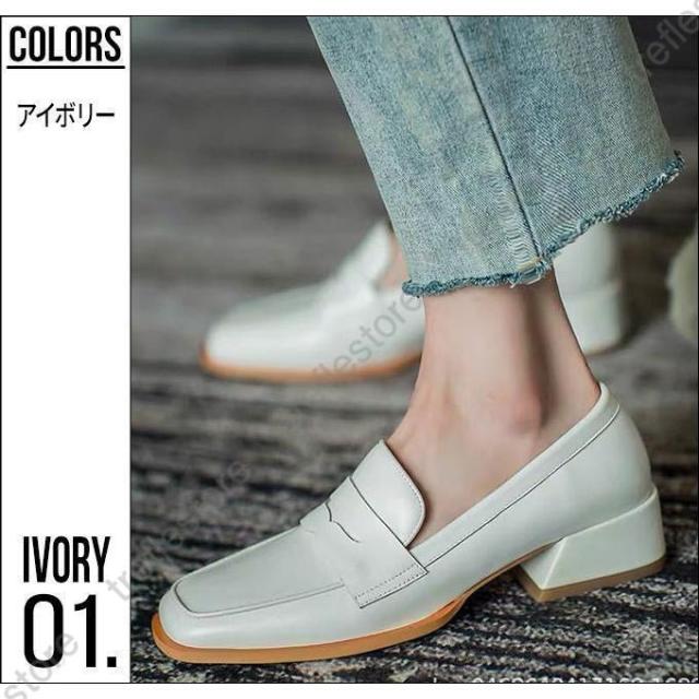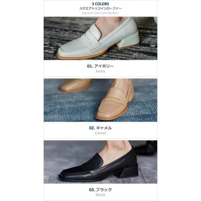 【ポイント5倍!】ローファー レディース ヒール 軽い スクエアトゥ 秋 痛くない コインローファー アイボリー キャメル ブラック