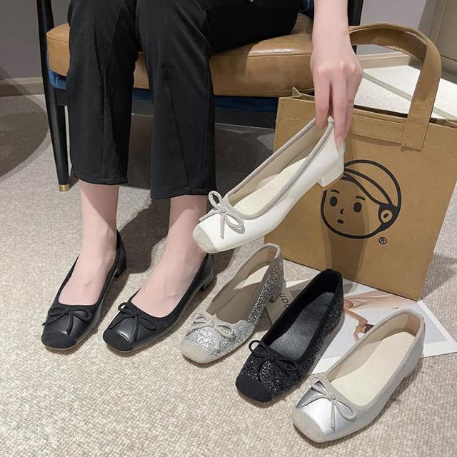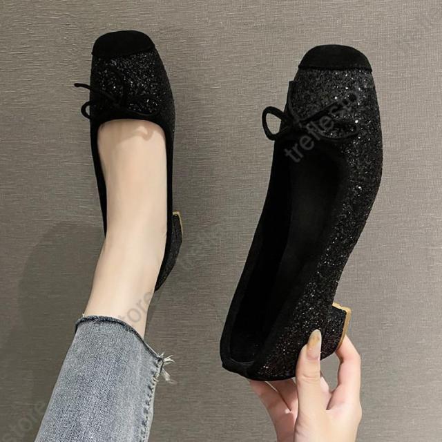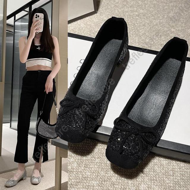 【ポイント5倍!】パンプス スクエアトゥ レディース 歩きやすい フラットパンプス 痛くない ラメパンプス フラットサンダル 歩きやすい 太ヒール ヒール3CM 美脚 ダンス靴 通勤