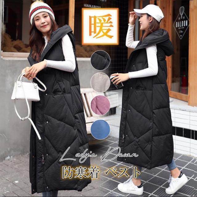【ポイント5倍!】ダウンベスト レディース ロング丈コート 厚手 暖かい フード付け ダウンジャケット 秋冬 中綿ベスト ゆったり 防寒着 おしゃれ 大きいサイズ