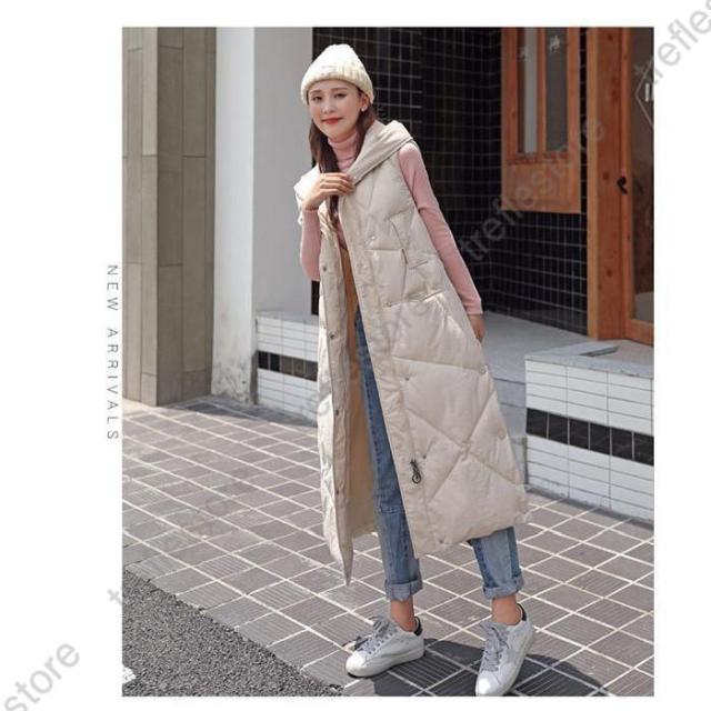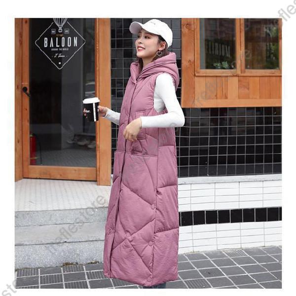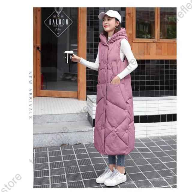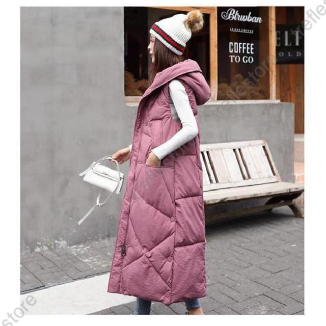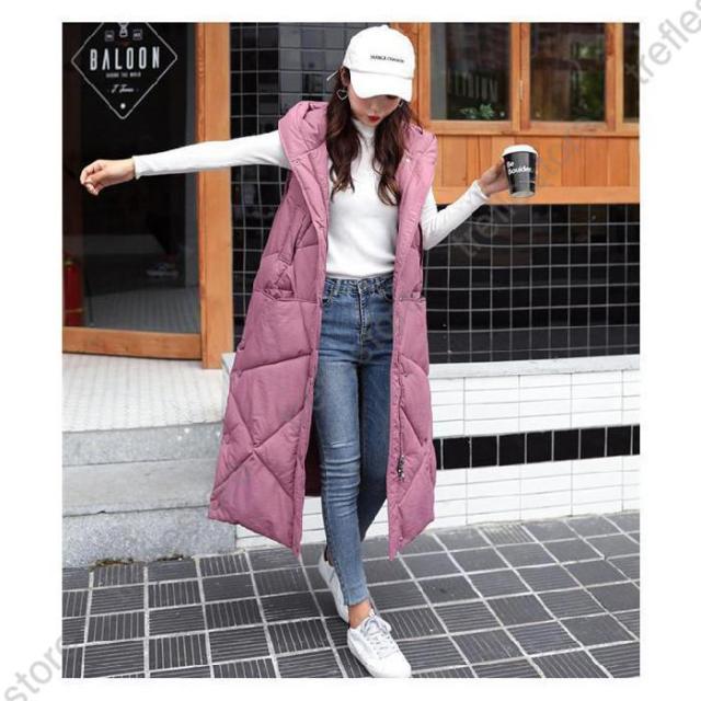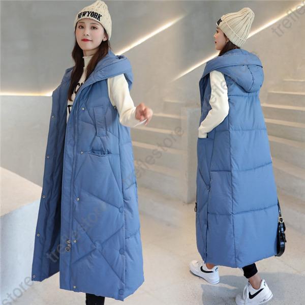 ダウンベスト レディース ロング丈コート 厚手 暖かい フード付け ダウンジャケット 秋冬 中綿ベスト ゆったり 防寒着 おしゃれ 大きいサイズ