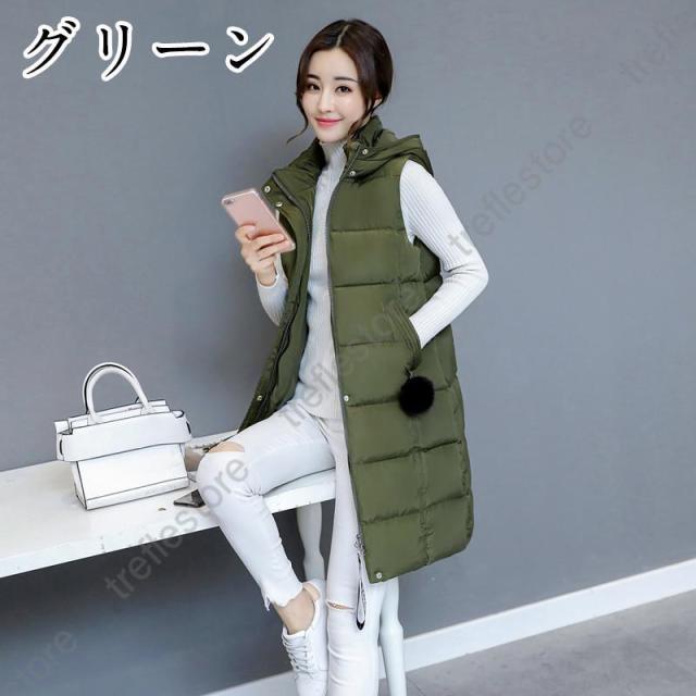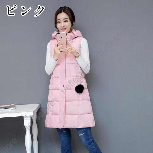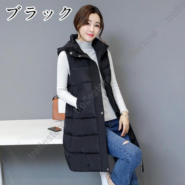 中綿ベスト レディース ダウンベスト ロング丈 ロングコート ダウンコート フード付き 秋 冬 アウター 防寒着