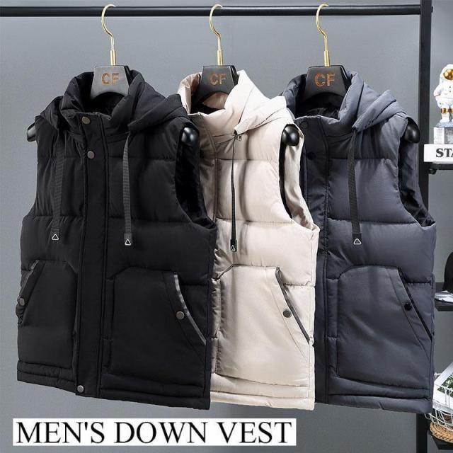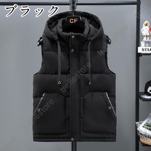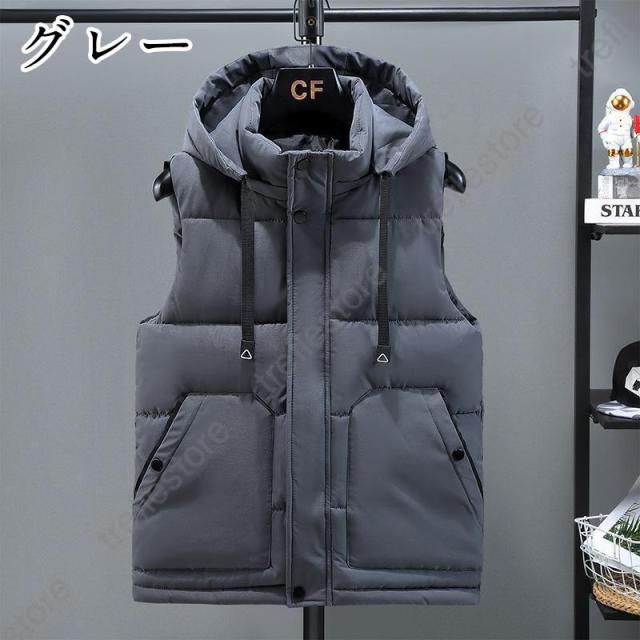 【ポイント5倍!】ダウンベストメンズ 防寒 おしゃれフード取り外し可能 中綿ベスト 軽量 あったか アウター ジップアップ ベスト 暖かい カジュアルフードベスト抜群 あったか
