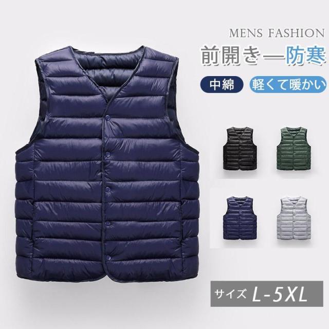 【ポイント5倍!】中綿ダウンベスト メンズ インナーベスト ブルゾン アウター 暖かい 防寒着 前開き トップス おしゃれ 定番 ビジネス 冬服 アウトドア ジャケット