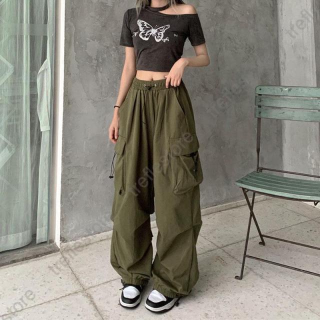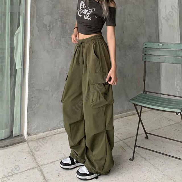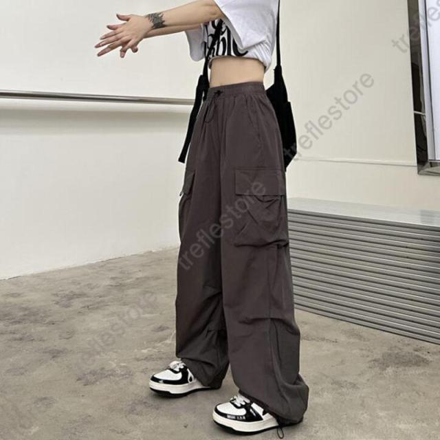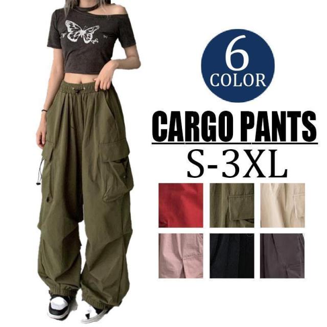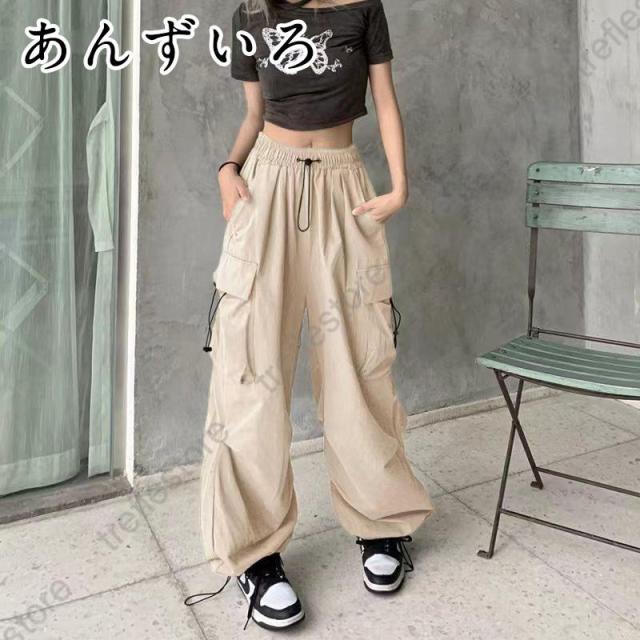 【ポイント5倍!】カーゴパンツ レディース ミリタリー ワイドパンツ ウエストゴム ヒップホップ ダンス ファッション カジュアル おしゃれ ゆったり 美シルエット 夏
