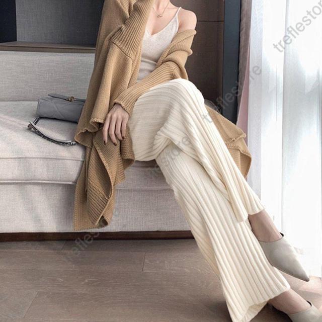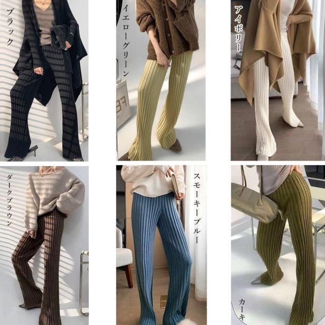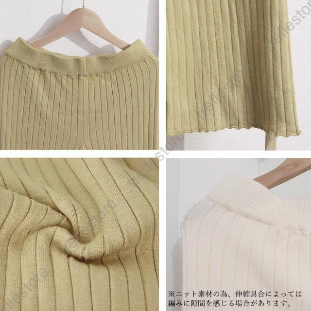 【ポイント5倍!】ワイドパンツ レディース 秋 冬 ニットパンツ リブニット パンツ ロングパンツ 無地 リブ ボトムス 大人 ガウチョパンツ ゆったり 40代 OL ママ OL