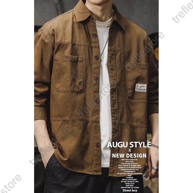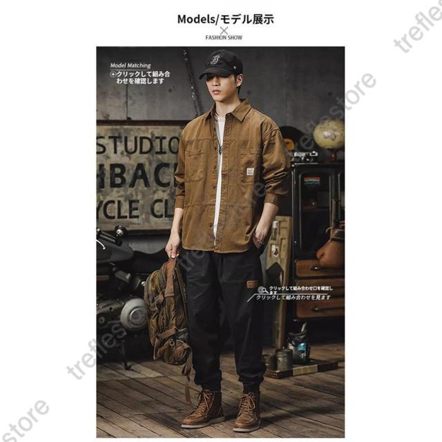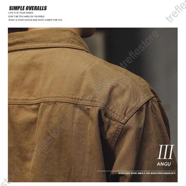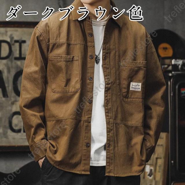 ミリタリージャケット メンズ ワークシャツ 長袖 白シャツ アメカジ ライトジャケット カジュアル ストリート オシャレ コットン メンズファッション
