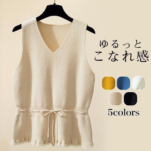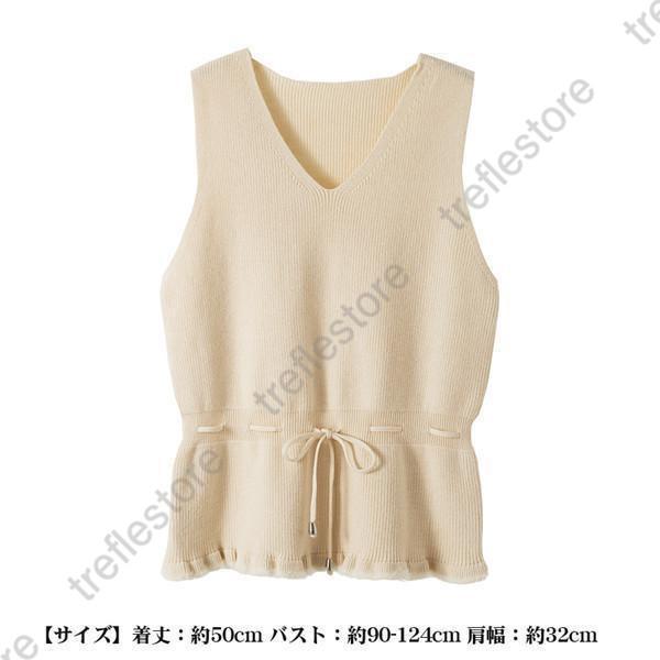 【ポイント5倍!】ニットベスト レディース チョッキ リボン付き Vネック スクールベスト ベスト ニットトップス ショット丈 上品 暖かい