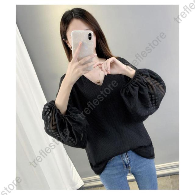 【ポイント5倍!】ブラウス 長袖 レディース シャツ トップス シフォン ボリューム袖 春秋 カットソー 入学式 オフィス 通勤 スーツ 事務服 インナー ビジネス
