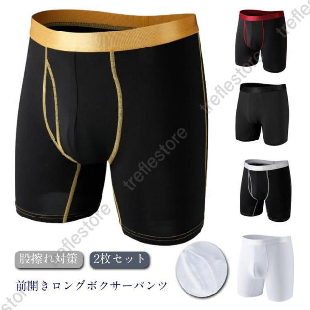 【ポイント5倍!】ロングボクサーパンツ 2枚セット 肌着 前開き ロング ボクサーブリーフ 股擦れ対策 男性下着 メンズ 紳士 男性 2枚セット アンダーウェア シンプ