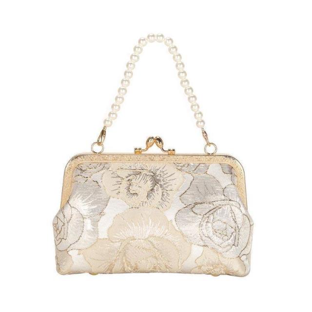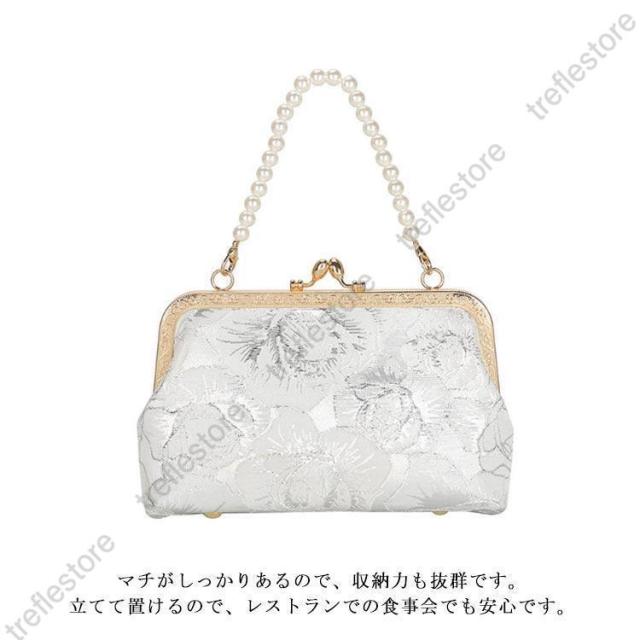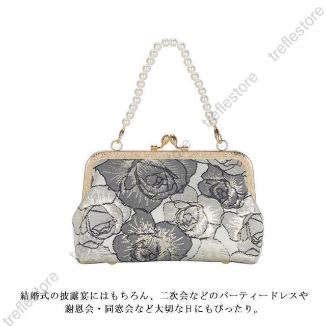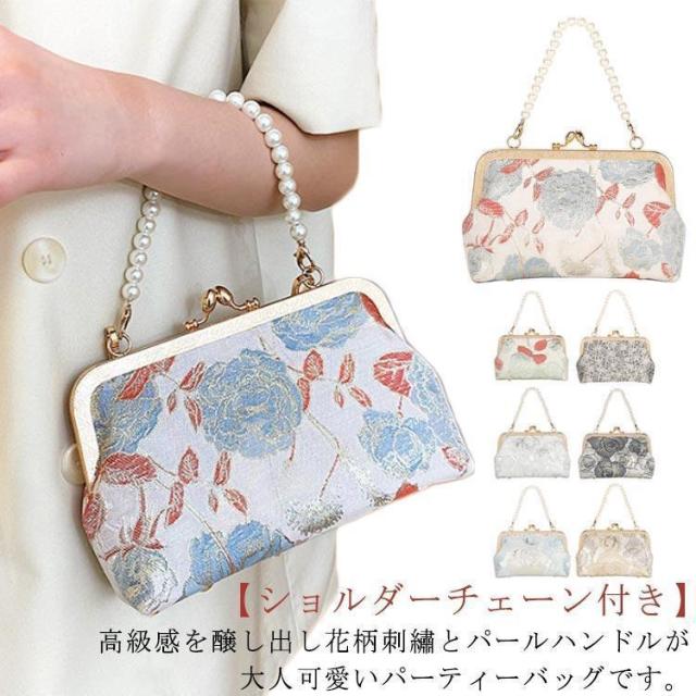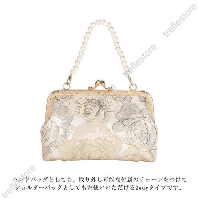 【ポイント5倍!】パーティーバッグ クラッチバッグ 結婚式 バッグ 刺繍 花柄 パール 手持ち がま口 ハンドバッグ ショルダーバッグ 2way パーティー パーティ