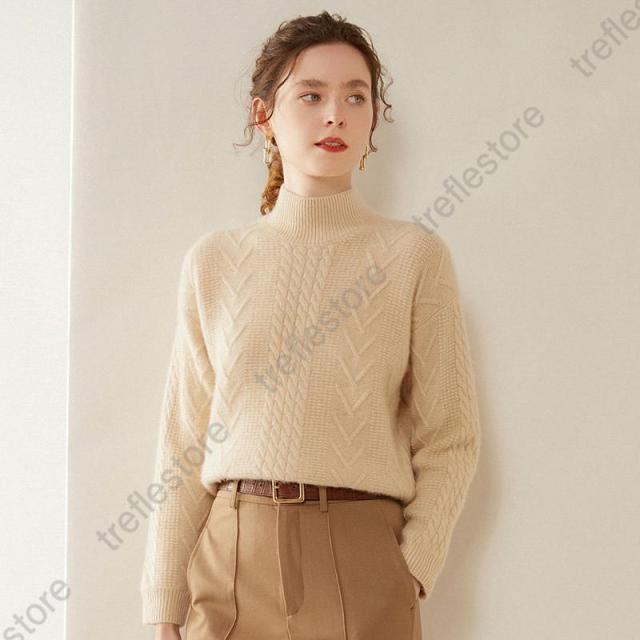 【ポイント5倍!】カシミヤセーター カシミヤ ハイネックセーター トップス プルオーバー ウールセーター レディース ハイネック ニット 無地 シンプル カジュアル 長袖