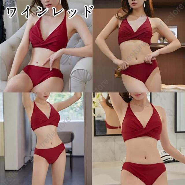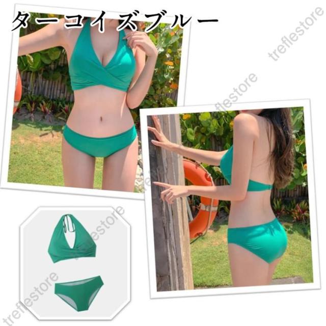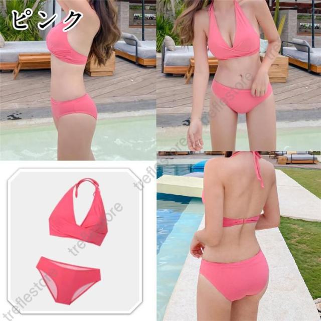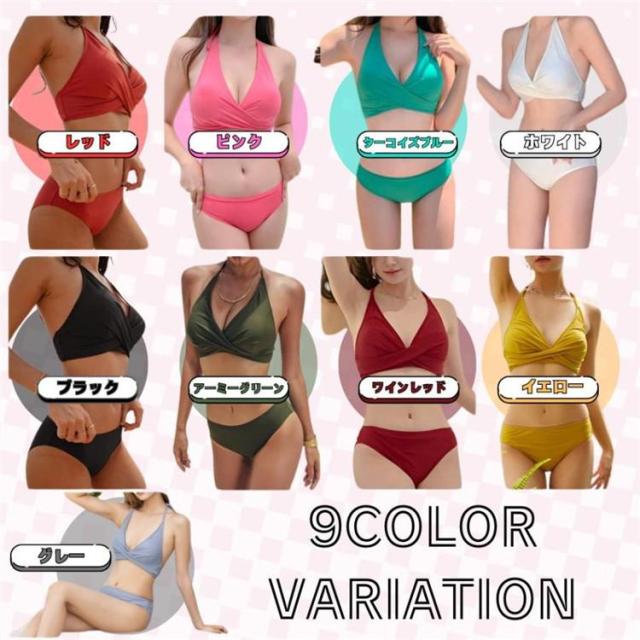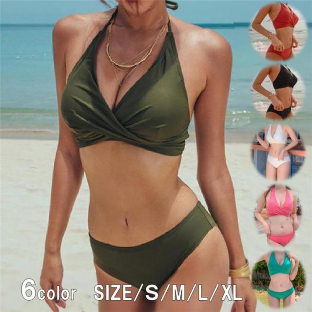 【ポイント5倍!】水着 レディース ビキニ セクシー ホルターネック 胸パッド ワイヤーなし クロス セパレート ビーチ 盛れる