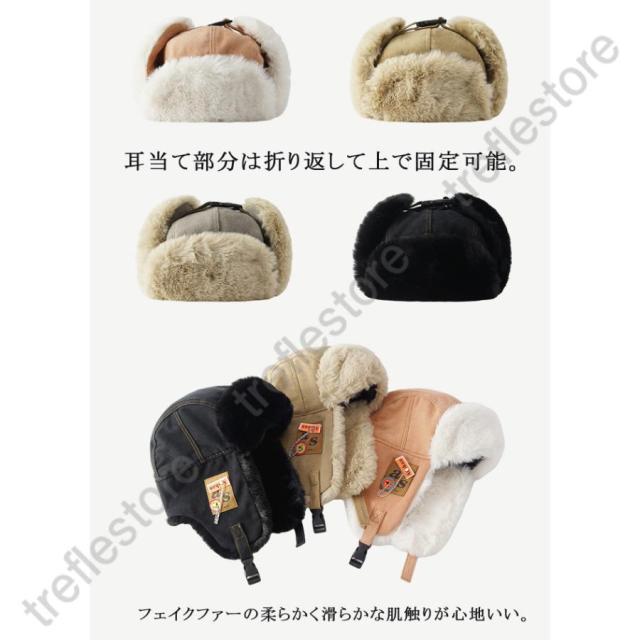 パイロットキャップ レディース メンズ 耳付き ふわふわ ファー 飛行帽 フライトキャップ 帽子 耳あて 防風 防寒 アウトドア 男女兼用 冬物