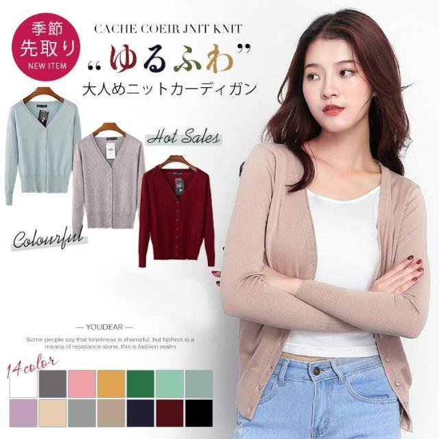 【ポイント5倍!】カーディガン レディース ニット カーディガン 洗えるニットショート丈 Vネック 長袖 UVカット 無地 事務 大人 シンプル 大きいサイズ 春