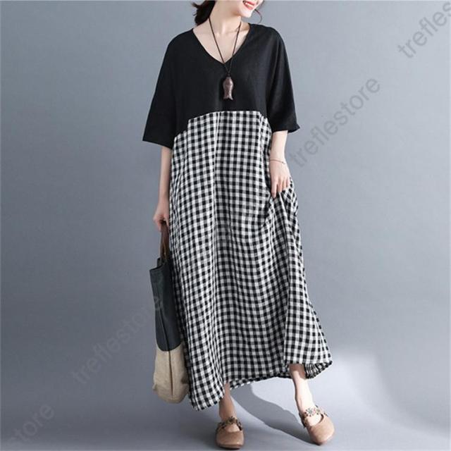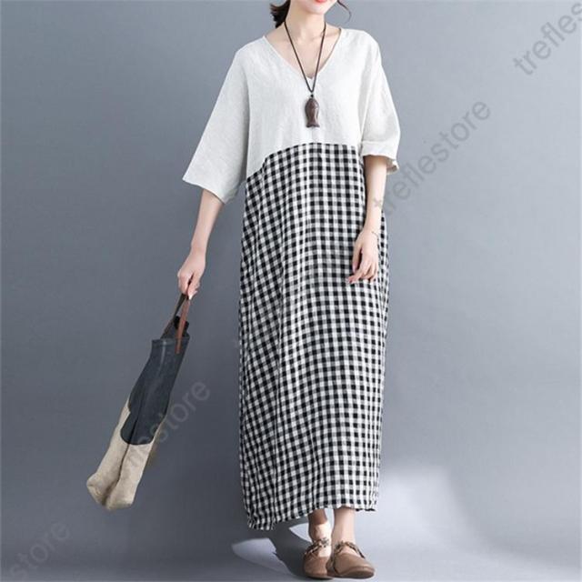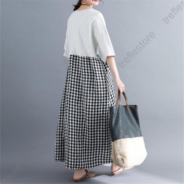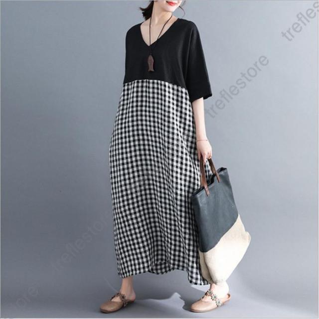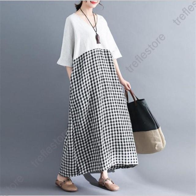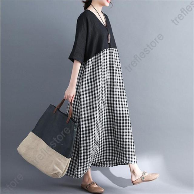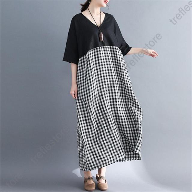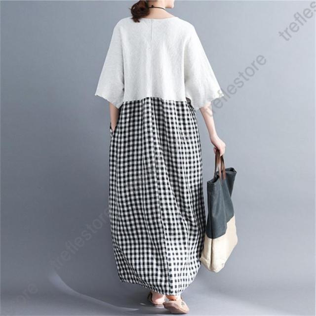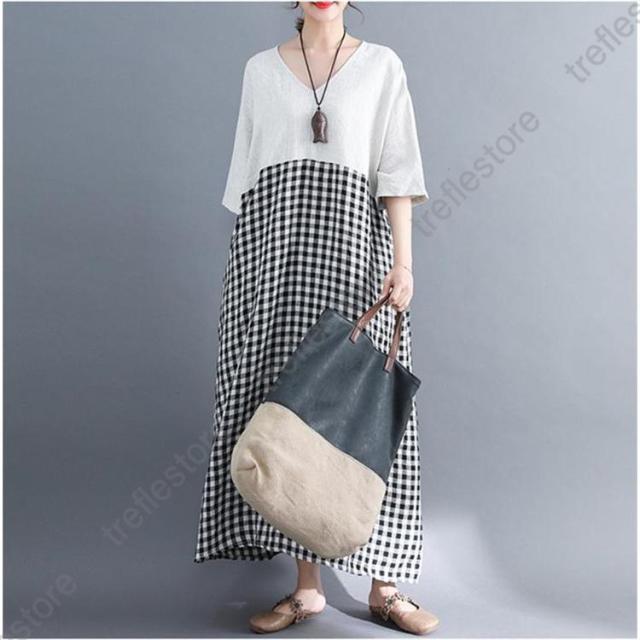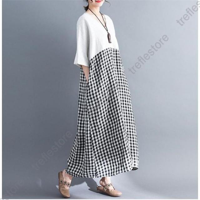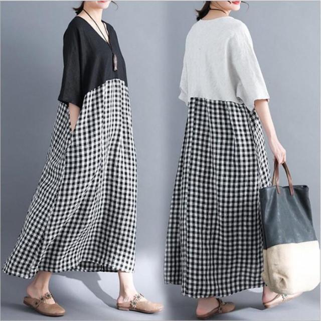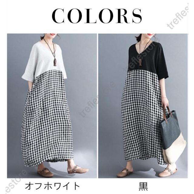【ポイント5倍!】ワンピース レディース コットンリネン ロング丈ワンピース 綿麻混 半袖 ワンピ ゆったり 体型カバー 大きいサイズ 着痩せ 夏 ワンピース 30代 40代