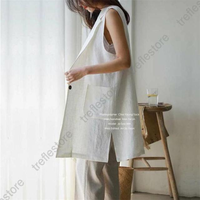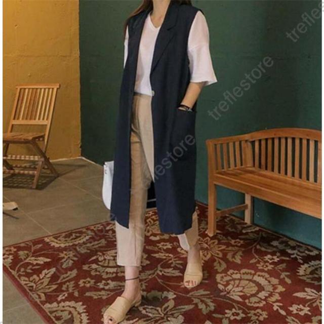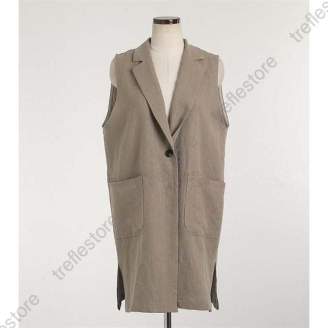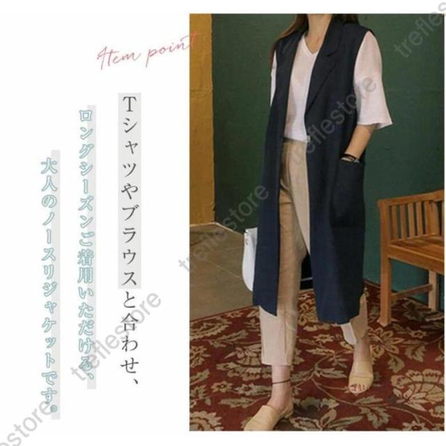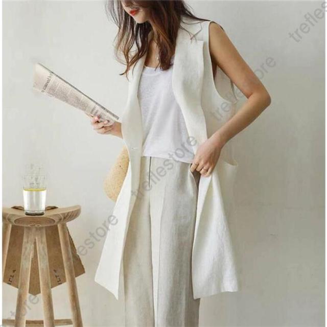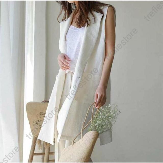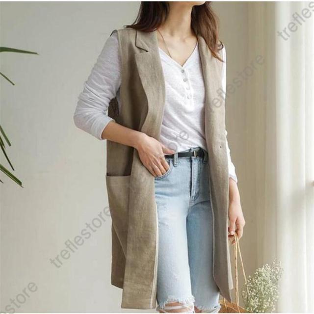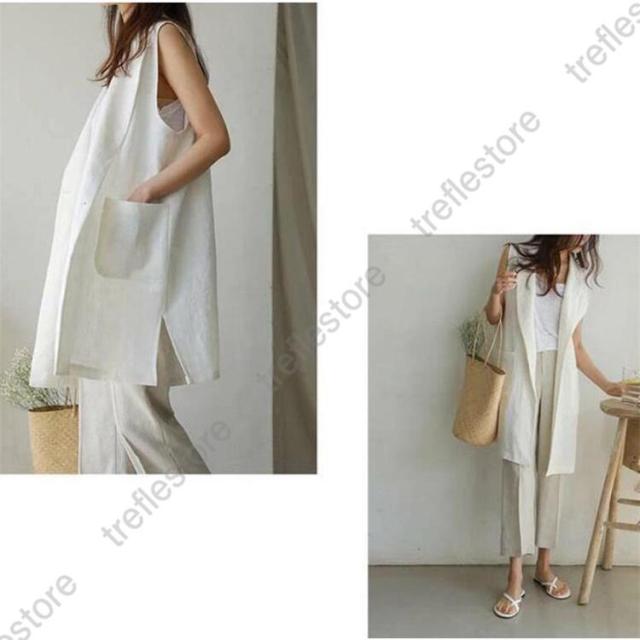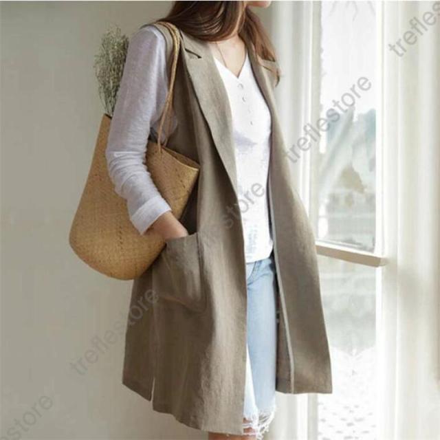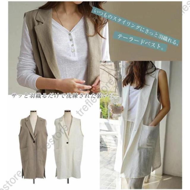 【ポイント5倍!】ジレベスト レディース 春夏 ロングジレ リネン テーラードジレ 綿麻 トレンチベスト テーラード風 無地 ジレンチ トップス ロングベスト 春 秋 夏