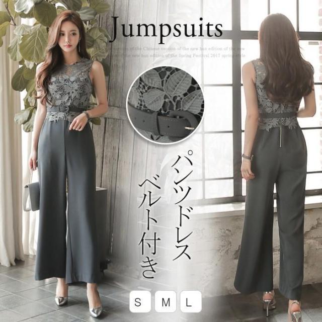 【ポイント5倍!】オールインワン パンツドレス 結婚式 パーティードレス ワイドパンツ ハイウエスト 夏 オールインワン フォーマル パンツドレス ワイド 二次会 お呼ばれ