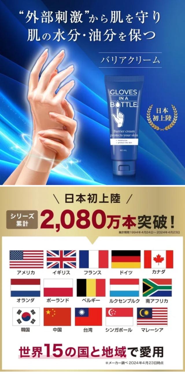 乾燥 水仕事 手 足 顔 全身 ハンドクリーム べたつかない 伸びが良い ボディクリーム しっとり TV通販 グローブインボトル バリアクリーム 60ml 保湿クリーム GLOVES IN A BOTTLE