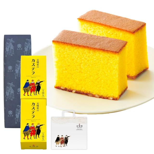 文明堂のカステラ 0.5A号2本入 (5切れ×2本入) 手土産 ギフト 御菓子 人気 手提げ袋付き プレゼント ありがとう 和菓子 焼き菓子 手土産