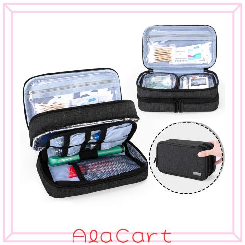大容量:第一層にある3つのジッパー式ポケットには血糖値測定器、穿刺具、センサーなどの血糖値測定用品を収納することができます。第二層にある2つのメッシュポケットには保冷剤を入れて、付属の折りたたみ式ポーチにはインスリンペン、インスリン注射器、インスリンバイアルなどを収納することができます。