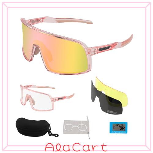 [FOCUHUNTER] 偏光サングラス スポーツサングラス 交換レンズ3枚‐(偏光レンズ、イエローレンズ、ピンクミラーレンズ) ピンクフルフレー
