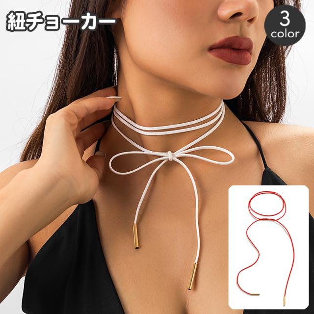 紐チョーカー レディース ストリングチョーカー リボンチョーカー レザー調 コードネックレス アクセサリー 長め ロング 二連