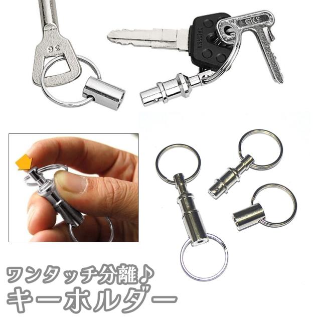 キーホルダー キーリング 分離 着脱 ワンタッチ プッシュ 取り外し クイックリリース 外れる 簡単 持ち運び 便利 小型 鍵